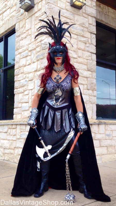 Need Women Warrior Killer Costume Ideas? Viking? Fantasy? Roman? Medieval? Celtic? Renaissance? Cosplay? We’ve got it all. Like this Penthesilea, Greek Queen of the Amazon Women Warriors Race from Greek Mythology. Penthesilea is said to have invented the battle axe. We have Costumes that are great for Theme Parties, Theatrical or Renaissance and Medieval Festivals. We have costumes from head to toe or just the armor, weapons or accessories you need. This outfit or its components, could definitely work of Cosplay Events and Comic Con Characters. What is your ideas of a woman warrior? We have the largest inventory of Women Warrior Costumes & Accessories in the Dallas Area. Get complete outfits or just the pieces you need. We are open all year and our prices vary from Supreme Quality to Median or Economy Priced Costumes.