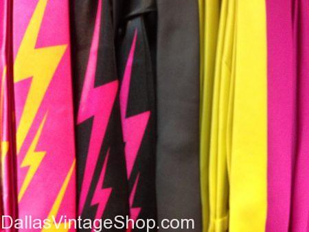 Mens Trendy Skinny Ties, Mens 80s Neon Skinny Ties, Mens 80s Costume Skinny Ties, Mens Bright Colored Prom Ties