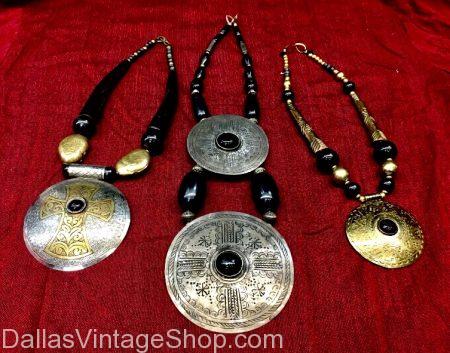 If you can imagine it, we can make it reality! Dallas Vintage Shop has thousands of costumes, jewelry pieces and accessories to help you put together any kind of costume you could need! These huge medallion costume necklaces, chains, jewelry and accessories make great additions to Tribal Chieftain, Warrior, God and Priest costumes!