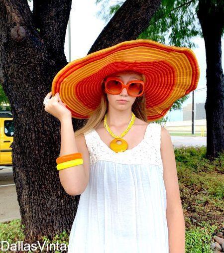 Our huge selection of Tropical Sun Hats come in many colors, wide brims, sleek, chic or gaudy fashions, vintage or period styles . We also have unlimited choices of matching tropical jewelry & sunglasses at Dallas Vintage Shop.
