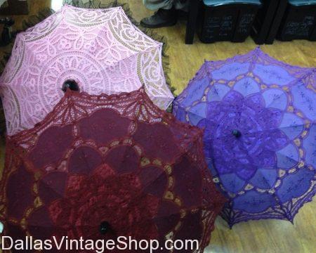 We have beautiful Victorian Parasols & all the Dickens Era Costumes & Accessories for Dickens on the Strand Galveston, TX. For Top Quality Victorian Parasols & Accessories for Dickens Period Theatrical or Themed Weddings come to Dallas Vintage Shop. Be sure to plan for a long visit in order to have enough time to see everything available in our store.
