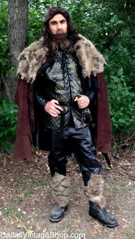 We have Famous Historical Vikings Attire for TV History Channel Vikings & all your favorite Viking Movies. This Rollo Sigurdsson Viking Outfit, from ‘the Vikings’ TV Series on History Channel is just one Viking Character Outfit we can supply for you from our endless supply of Viking Warrior Costumes, Viking Garb, Viking Weapons, Makeup, Viking Beards & Wigs, Viking Vambraces, Jewelry and more. You will find Real & Faux Leather, Real & Faux Fur and Rough Fabric Garments, Cloaks, Pants, Tunics and more Viking Costumes & Accessories than you have ever seen in one place. We have the largest collection of Viking Costumes and Garb in the Dallas Area. Get Complete Outfits or just the Accessories you need. We have Supreme Quality or Economy Viking Attire for Men, Ladies & Children. From Theatrical Wardrobes to School Project Costumes and killer Theme Party or Halloween Party Outfits, we have what you need. We also have Renaissance Festival and Medieval Quality Garb and we are open all year.