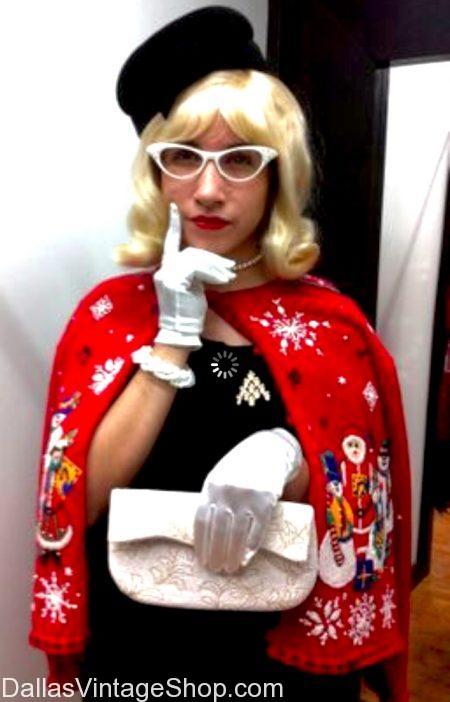 Vintage Christmas Sweaters: We have 1950’s, 60’s, and other Vintage Sweaters and we’ll help you create a Complete Christmas Outfit to match the theme of your Vintage or Other Themed Sweater. That makes Dallas Vintage Shop truly unique. CLICK TO SEE MORE: Christmas Sweaters CLICK TO VIEW: Fun Christmas Costumes.
