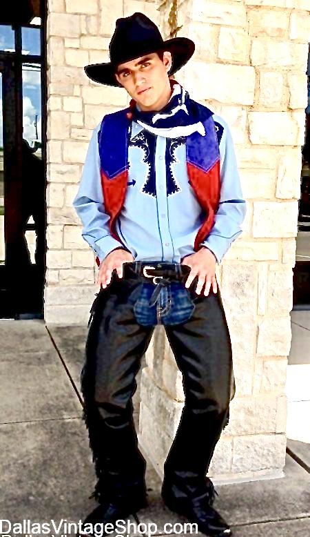 How about Handsome Texas Cowboys Outfits, like this ‘Texas!’ Outdoor Musical Costume? When it comes to Western Wear Texas Cowboy Pageant Attire and Gear nobody has more than Dallas Vintage Shop. We have Fancy High Quality Theatrical Western Wear Texas Cowboy Outfits and Texas Cowboy Theme Party Attire. This Outfit is for ‘Texas!’-The Outdoor Musical in Palo Duro Canyon, that happens in the Texas Panhandle every Summer. We have Western Wear Attire, Costumes and Real Texas Cowboy Gear that is Impressively Showy and still rugged and durable, like Texans. Get complete Texas Cowboy Outfits or just the hard to find pieces you need. We have amazing Western Outfits for Spaghetti Westerns, Western Musicals, Theatrical Productions and Outdoor Texas Heritage and Historical Festivals & Celebrations. Get Outfits for Famous Movie Characters about Texas or anywhere or anytime & anywhere in the Old West or even Modern Show Off Texas Cowboys and Country Rock Stay Celebrity Getups. We are open all year.