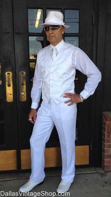 White Party Gentlemen’s Attire Dallas, Tails & Top Hats. When you Need White Party Gentleman’s or Ladies Attire. Nobody can beat our selection and creativity when it comes to All White Theme Party Clothing Ideas. From Formal to Pimp Daddy, From Marie Antoinette to Madonna, From Royalty to Hippie, Fantasy to Scifi, Any Decade & Any Century, Any Character & Any Event, we have you covered with the most incredible collection or clothing, costumes & accessories.