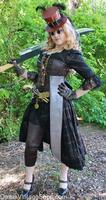 How do you like this Steampunk Alice in Wonderland Costume? We have more Ladies Steampunk Fashions & Accessories than you would believe. Need Ladies Unique Steampunk Costume Ideas? Let us hook you up. Get this STEAMPUNK ‘Alice in Wonderland’ Outfit or other Ladies Unique Steampunk Costume Ideas. We are the BEST STEAMPUNK COSTUME SHOP in the DFW area. Huge Collection Steampunk Victorian Ladies & Gentleman’s Attire, Steampunk Gear, Steampunk Top Hats, Steampunk Weapons, Holsters, Baldrics, Belts, Steampunk Goggles, Glasses, Jewelry, Gadgets, Steampunk Ladies and Men’s Shoes & a ton more.