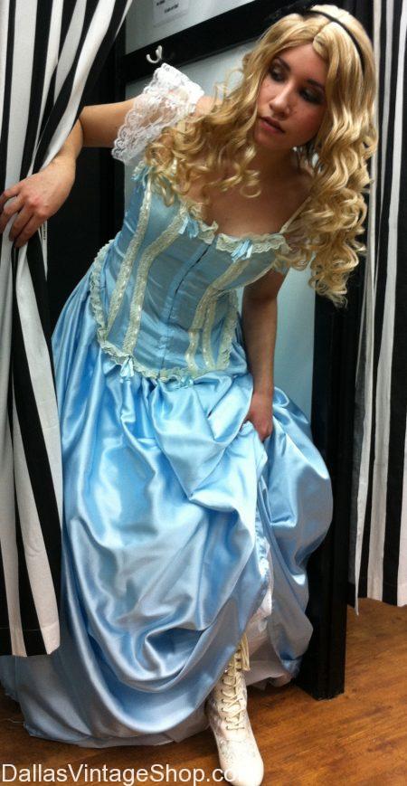 Look at this Lovely Alice in Wonderland, New Movie, Blue Dress. This Alice in Wonderland Costume and other versions of Alice in Wonderland Outfits are in stock in our shop. We have all the Cast Wardrobes from the Classic Alice In Wonderland or the New Movie Versions. You may wish to create your own Alice in Wonderland Character Costumes from our wide array of Vintage Clothing, Costumes & Accessories. Get Complete Alice in Wonderland Character Costumes or just the piece you need, Our Wigs, Makeup and Shoes are great quality. We have economy and Theatrical or Supreme Quality Alice in Wonderland Outfits for you. We have Kids & Halloween Alice in Wonderland Costumes too.