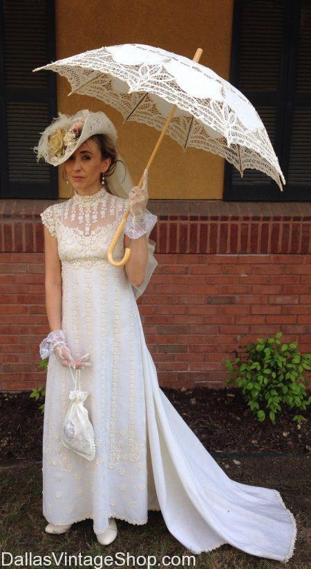 Need Theatrical or High School Drama Troupe Period Attire? This is one idea of a wedding dress for ‘Oklahoma’, Rodgers & Hammerstein, Laurey Wedding Dress Costume. We have more simple wedding dress ideas too. This is also great for Seven Brides. for Seven Brothers, Texas, The Musical and so many more. We have all the Outfits for men, women, boys & girls for theatrical or school history projects. Out wigs, hats, makeup selection, gloves, shoes and other accessories are unimaginably plentiful and diverse. Create your own wardrobe or get the hard to find pieces you like.