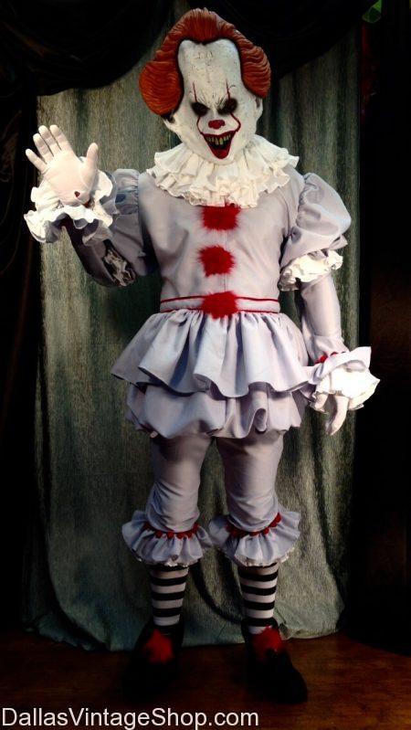 Like this New ‘Pennywise’ from ‘It’ Movie or ‘It Chapter II’ Costume? We have Deluxe & Supreme Quality ‘It’ Costumes and “It” Masks in stock. This Deluxe ‘It’ Complete Outfit is quite amazing. Dallas Vintage Shop has Supreme ‘It’ or ‘It Chapter 2’ Costumes and we have Median & Economy Quality Pennywise Costumes. Gloves, Masks and we also have many other Horror Clown famous & infamous Clowns, We have Happy, Circus & Hobo Clowns galore. We are open Halloween and all year round.