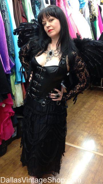 This was the Steampunk Witch Hunter Costume worn to the Witches Ball Fundraiser for In-Sync Exotics located in Wylie. This wildlife rescue charity event was a big success. We serve the Sachse, Wylie, Collin County and North Texas area with the very largest selection of quality costumes for Charity Balls, Theatrical Productions, Child Historical Characters, School Projects, Theme Parties & Halloween. We are the largest Metroplex Vintage clothing & Costume Shop. We are open all year round to serve.